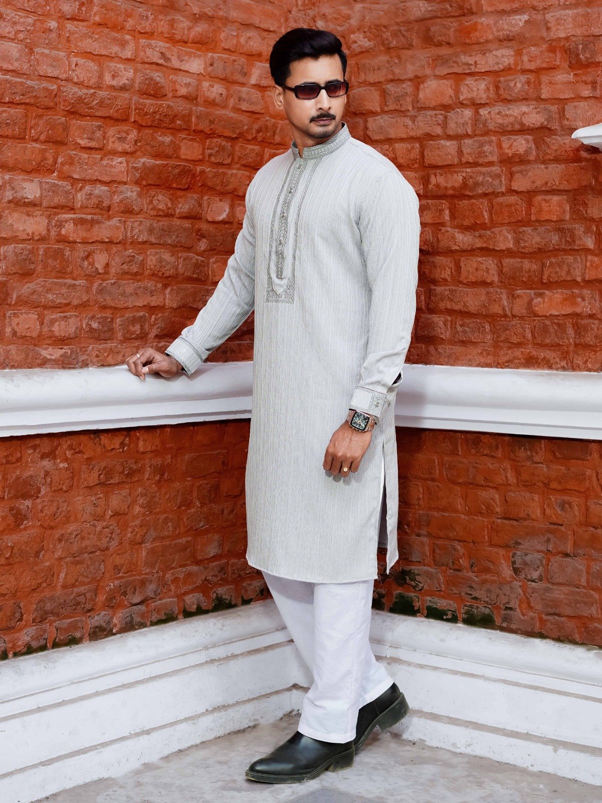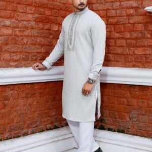 Designed with premium Jacquard cotton fabric, this Panjabi ensures breathable comfort and a distinctive textured finish, creating a polished and elegant appearance.