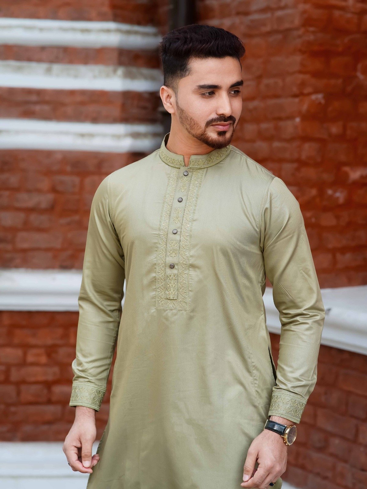 The detailed embroidery reflects timeless Mughal artistry, adding depth, texture, and a statement of prestige to every piece. Whether you’re attending Eid gatherings or a grand celebration, this Panjabi ensures you stand out with confidence and class.