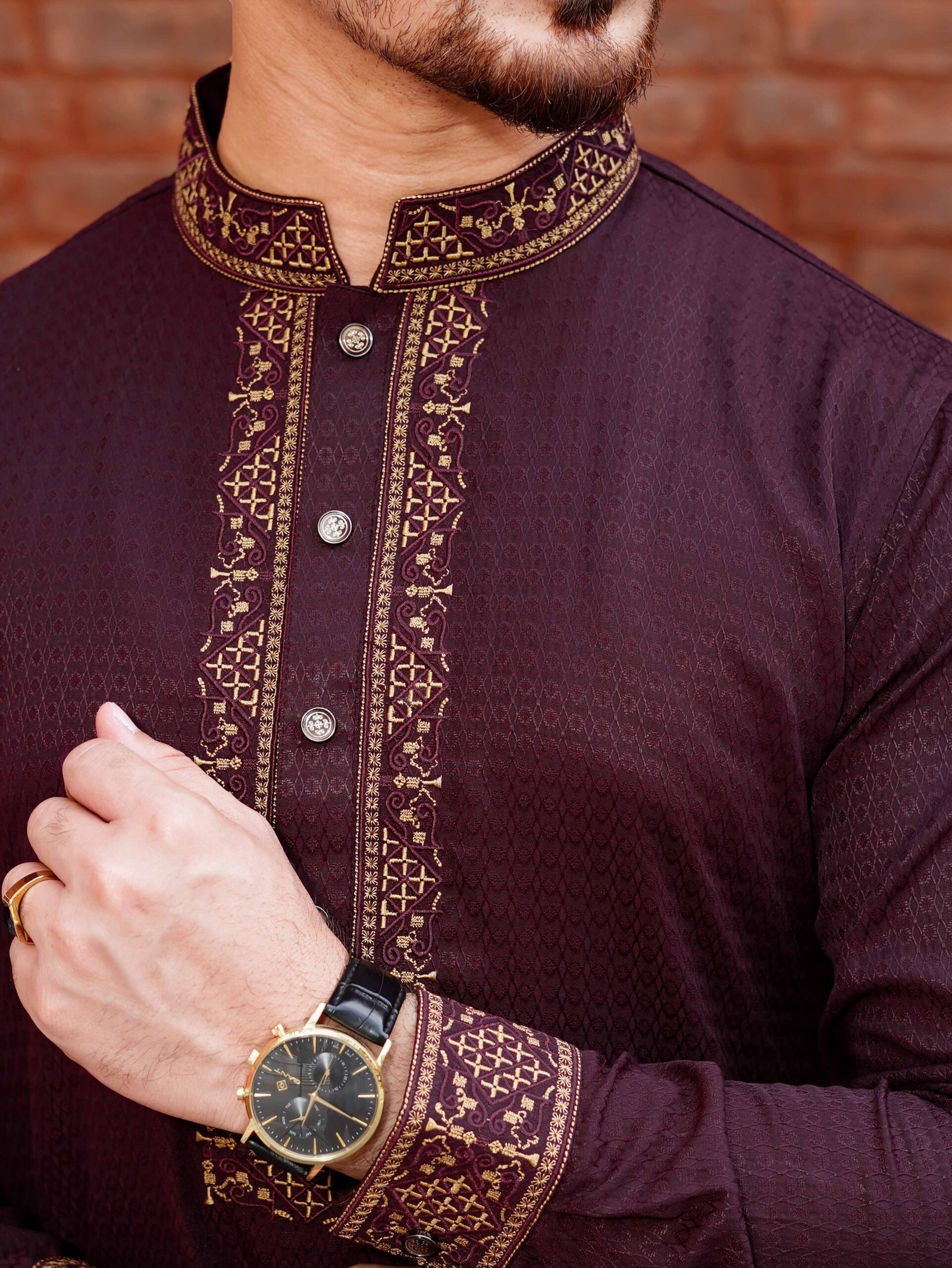 Ottoman Heritage Embroydery Panjabi | C-Tex Dark Maroon