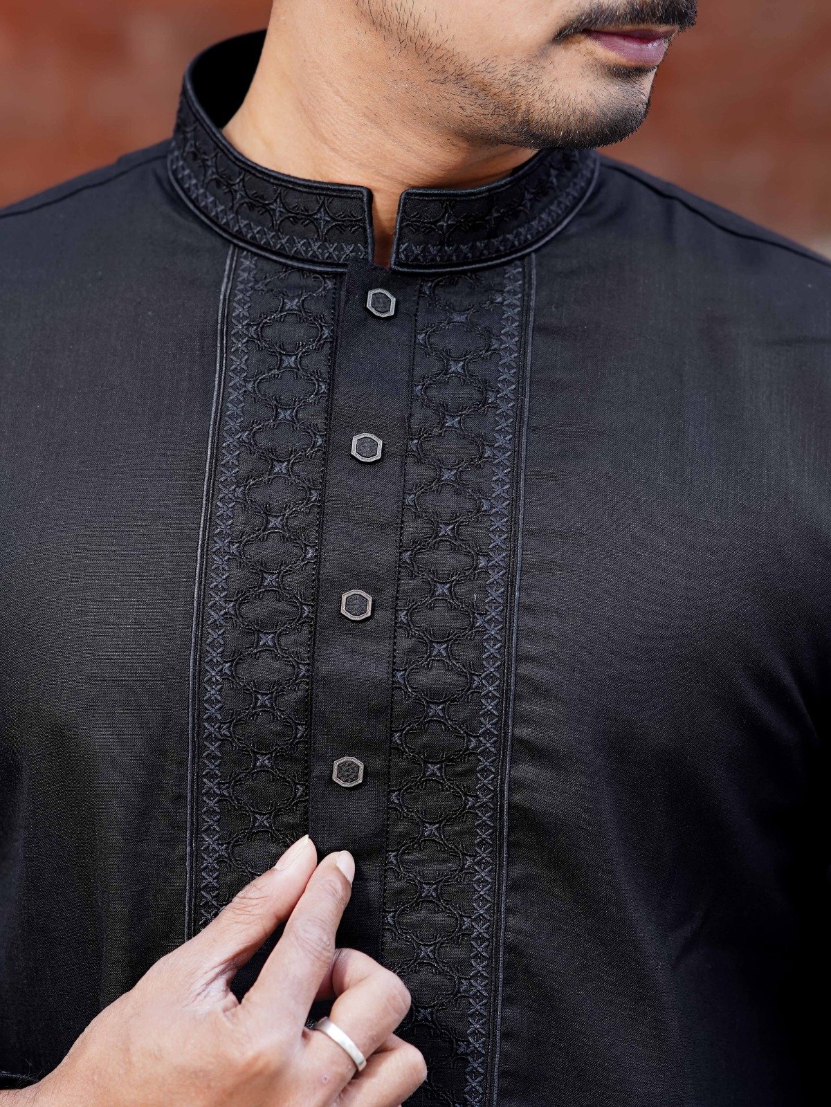 Crafted from premium quality cotton fabric, this Panjabi offers superior comfort, excellent breathability, and a smooth, rich texture for an elegant and refined look.